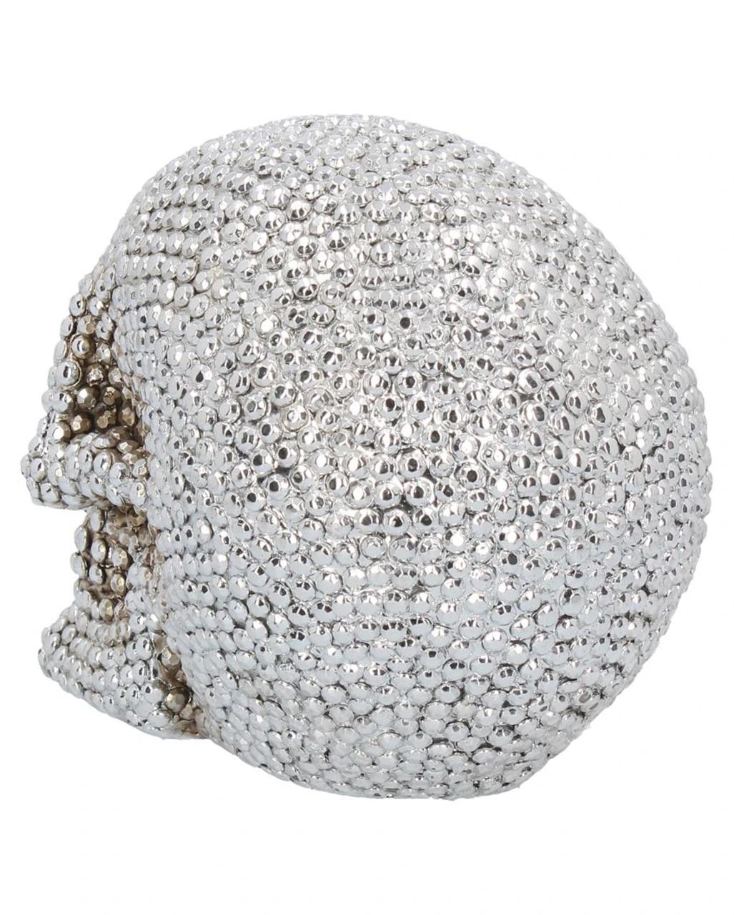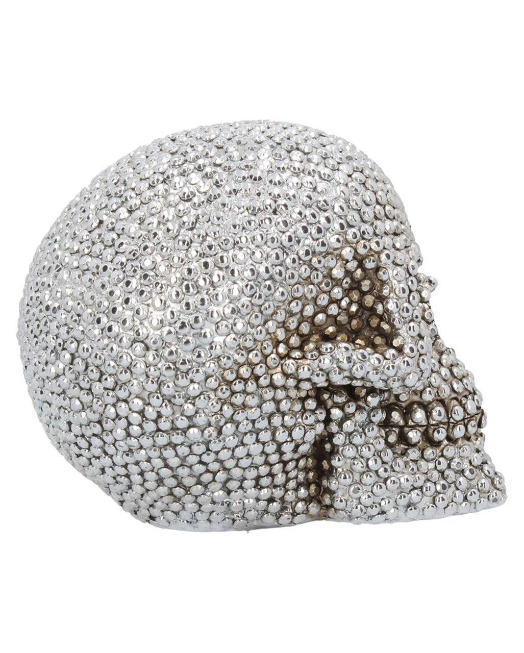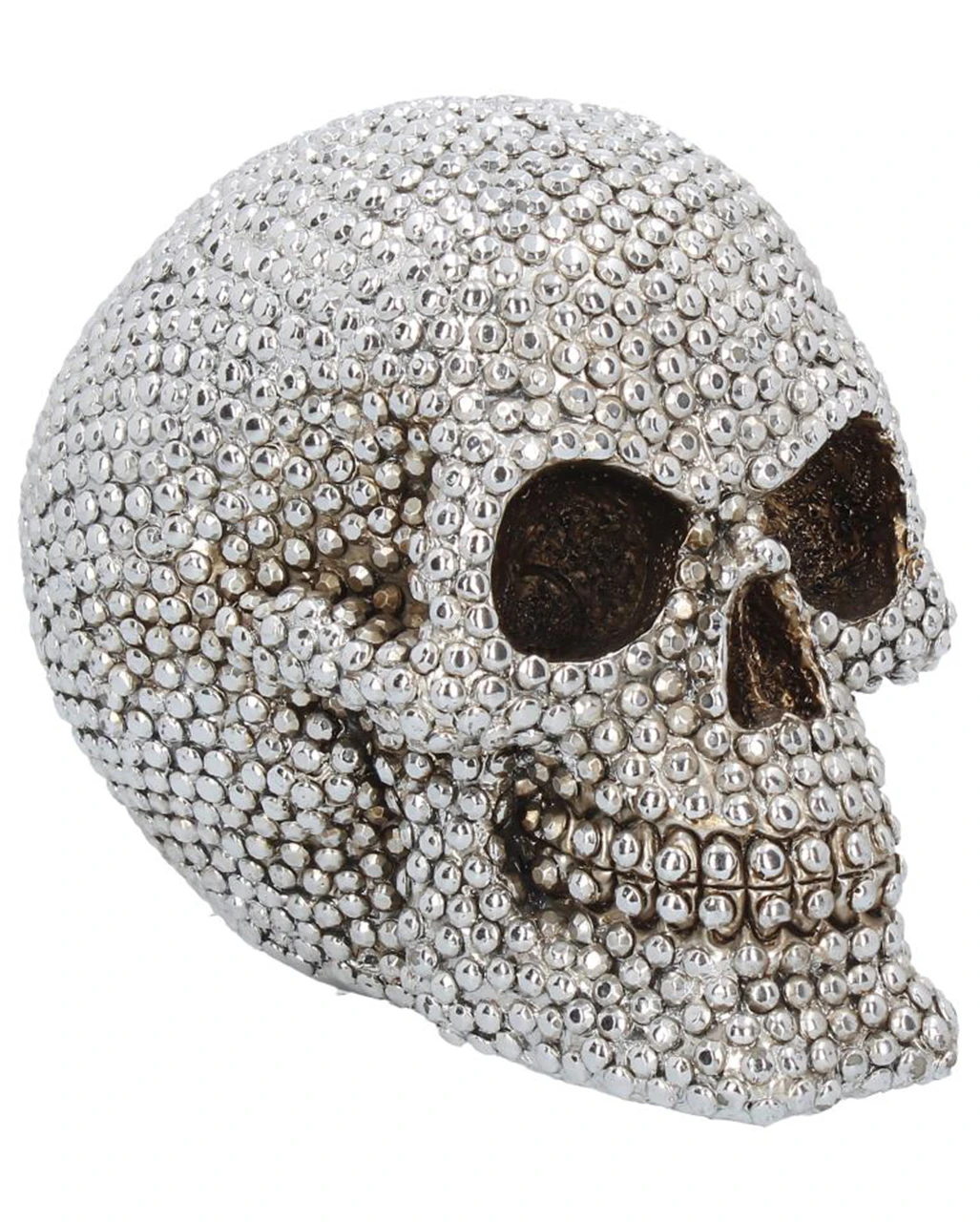 Hol dir den Aurora Borealis Totenschädel, wenn du deine Gruft mit ein bisschen Glamour ausstatten willst. Auch über den Tod hinaus sollte es nicht an ein bisschen Prunk und Pomp mangeln. Der grinsende Totenkopf ist mit seinen falschen Juwelen die perfekte Dekoration auf dem Kaminsims, einem Sideboard oder in einer Vitrine. Der grinsende Schädel sieht aus, als hätte Damien Hirst ein paar Diamanten übrig gehabt. Nur die schwarzen Augenhöhlen und die Nasenlöcher durchbrechen das morbide Meer aus funkelndem Glamour.