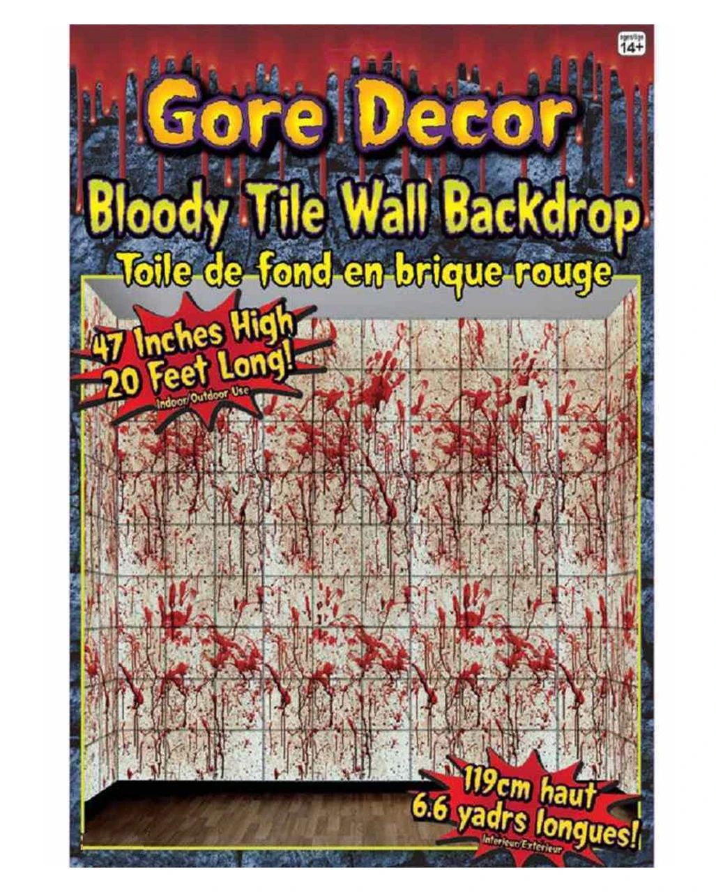 Leatherface würde sich in diesen Gemächern ganz wie zu Hause fühlen. Das blutige Wandfliesen Motiv verwandelt deine Party-Location in eine blutige Folterkammer! Unsere Blutige Kacheln Wandfolie kommt mit zahlreichen Blutspritzern und ist ein Muss für deine Haunted-House-Mottoparty. Das blutige Fliesen Motiv kann auch übereinander gesetzt werden, so dass Raumhöhe erreicht werden kann. So wirkt deine Folterkammer noch größer.