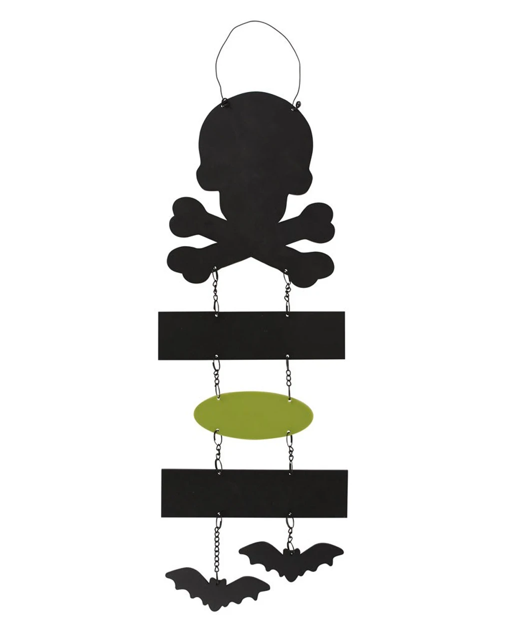 Hänge das Enter If You Dare Halloween Hängeschild an deine Tür oder Wand und begrüße damit deine Besucher und lasse deine Nachbarschaft wissen, dass es etwas Mut erfordert bei dir zu läuten, um ein paar Süßigkeiten zu erbetteln. Das Halloween Hängeschild ist aus MDF Holz und besteht aus verschiedenen Elementen, die mit Draht verbunden ein schauriges Gesamtbild ergeben. Der Totenschädel ist der erste Eyecatcher, bevor der Text ins Auge fällt. Die süßen Fledermäuse runden die schaurige Deko ab.