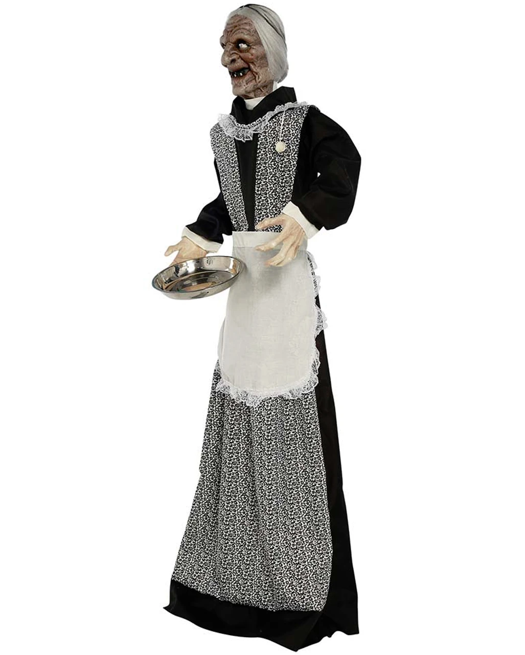 Untote Zombie Magd als sich bewegende Standfigur mit Servierteller, Leuchtaugen & Sound